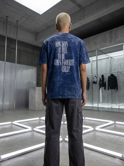CAN’T TAKE MY EYES OFF YOU Navy Blue Acid-wash t-shirt